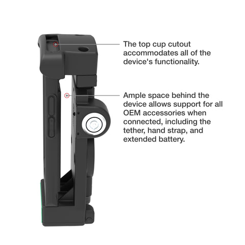 - Spring-loaded powered dock featuring GDS® Technology™ is designed to accommodate IntelliSkin®-wrapped handheld devices including the Zebra EC5x series