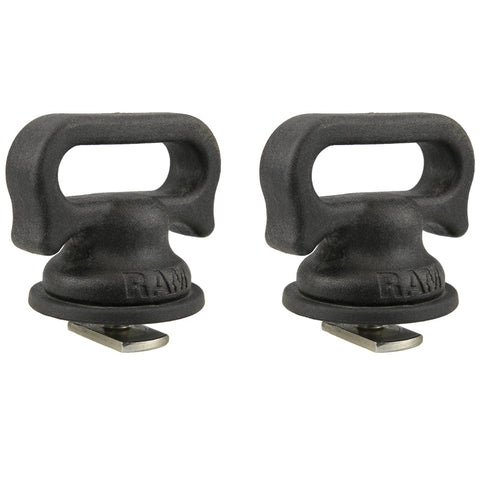 As a pack of two, the RAM® Vertical Track Tie Down system features a T-Bolt and provides an anchor point for use with a track mounting system, allowing you to secure coolers and other accessories to your kayak. Each tie down is designed to work with 1” and 1.5” flat webbing, as well as ropes and bungee cords up to 3/8”. Compatible with all versions of the RAM Tough-Track™.